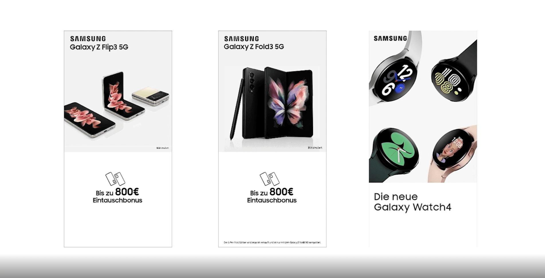 Wir sind sehr stolz auf unsere langjährige Kooperation mit diversen Samsung-Produkten, die in den letzten Jahren frisch gelauncht wurden. Unter diesen Produkten waren z. B. das mehrfach ausgezeichnete Samsung Galaxy Z Flip3 5G, das revolutionäre Galaxy Z Fold 3 5G und Galaxy Watch4.